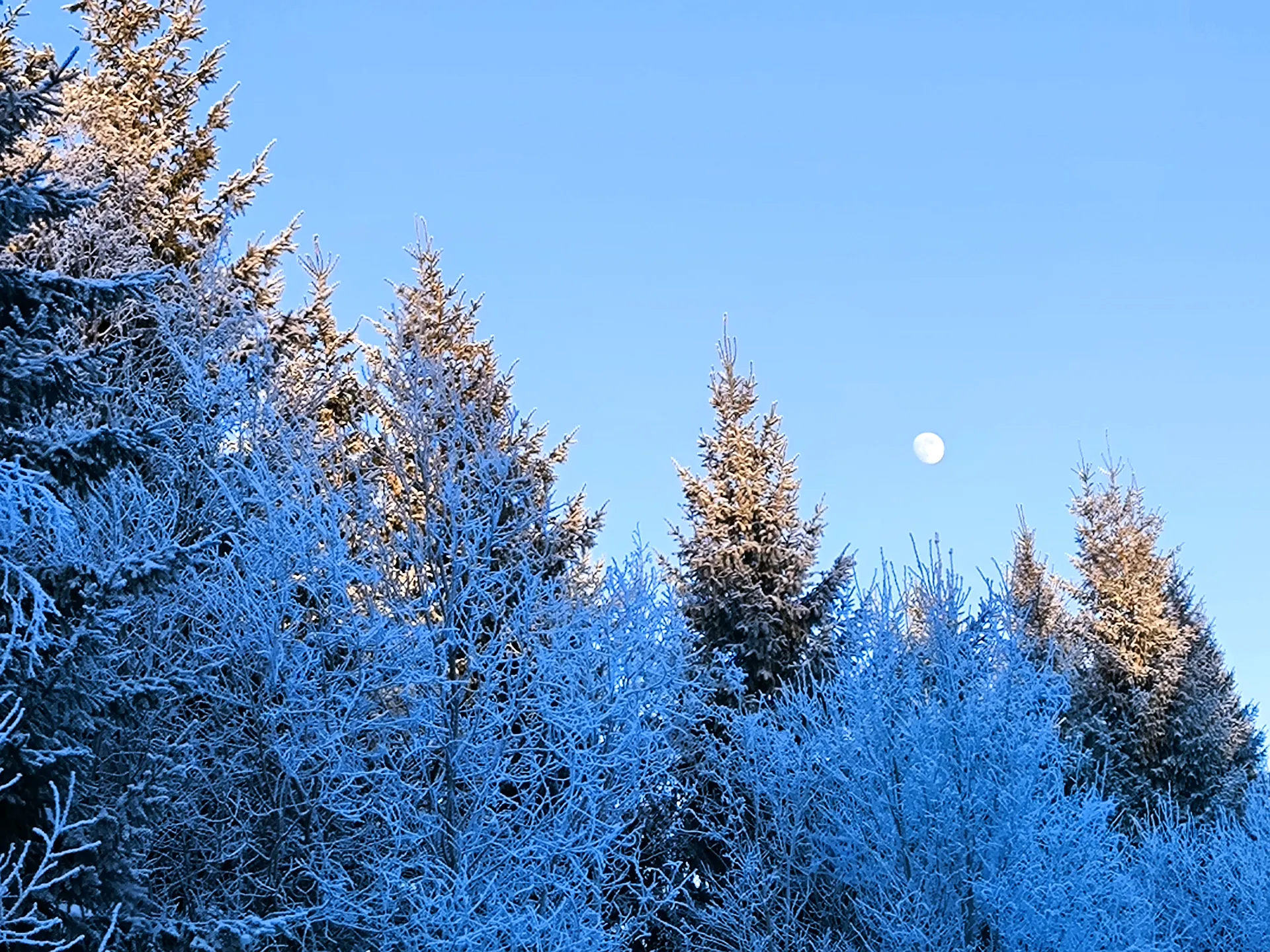 Už cestou ma upútal mesiac vysoko na oblohe počas dňa – jeho pokojná biela žiara kontrastovala s modrou oblohou a stálo za to zachytiť ho na fotkách.