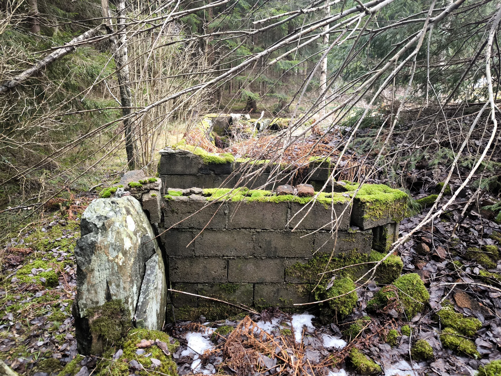 Počas prechádzky som narazil aj na niečo, čo ma prinútilo na chvíľu zastaviť. V lese, na krásnom pokojnom mieste, sa nachádzali ruiny starých základov domu. Pravdepodobne tam kedysi niekto býval.