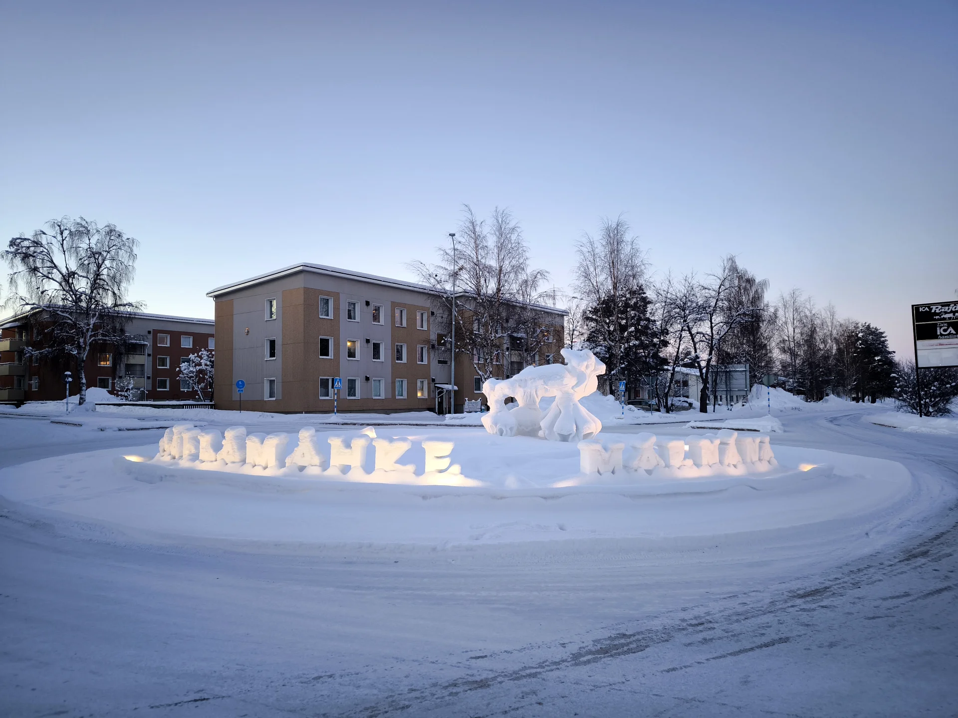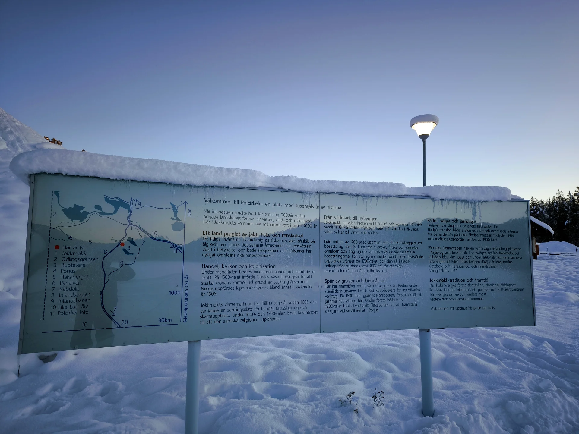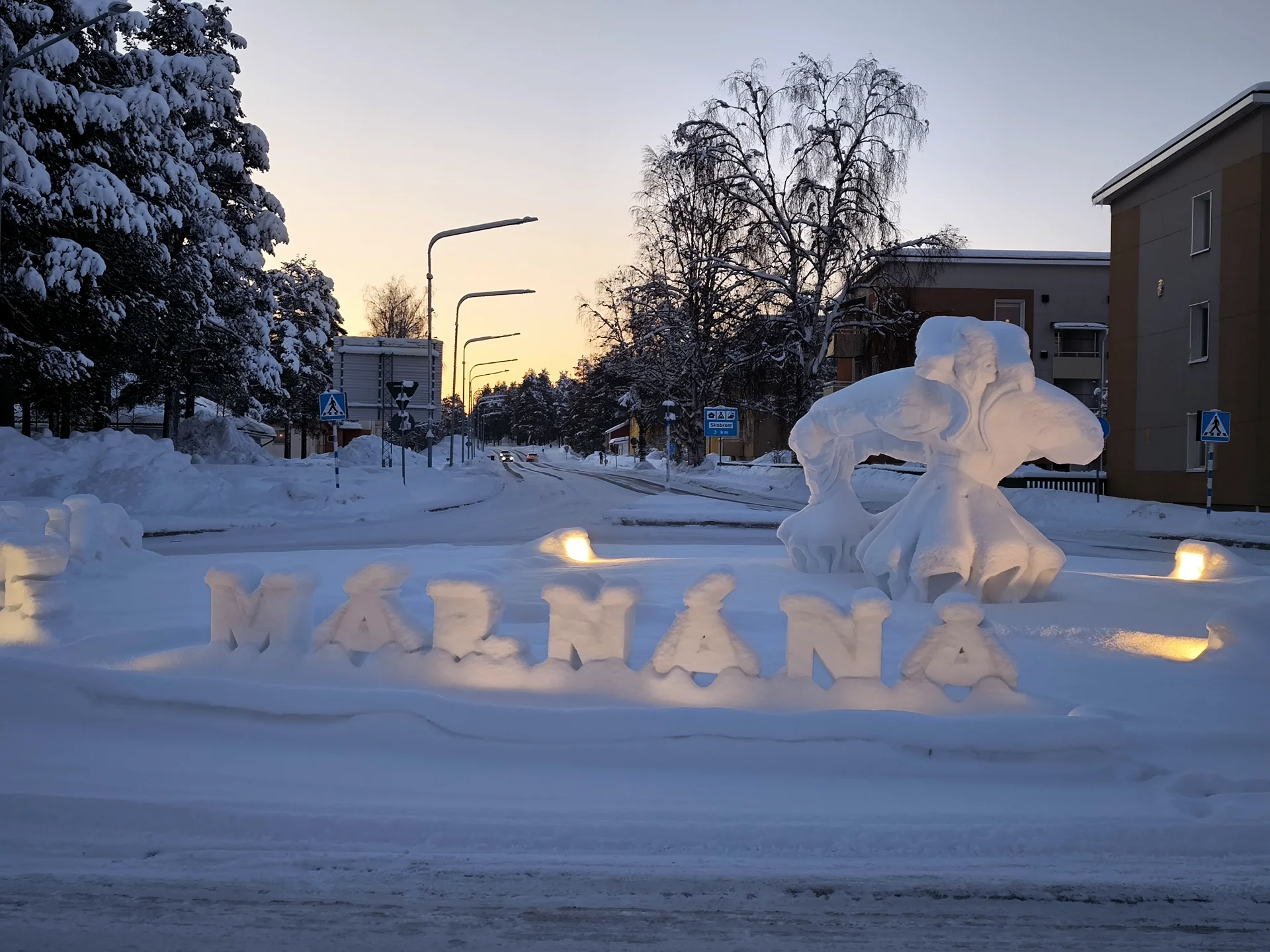 Cestou späť som sa zastavil v mestečku Jokkmokk, aby som nabil auto. Kým sa batéria dopĺňala, vybral som sa na krátku prechádzku. Studený vzduch som cítil až hlboko v pľúcach – taký ten severský, ostrý, čistý. Na jednom z kruhových objazdov ma čakal zvláštny výtvor zo snehu. Pripomínal mi ženu, no zároveň telo nejakého zvieraťa. Žeby nejaká spojitosť s týmto mestom? Alebo len fantázia niekoho, kto sa so snehom rozhodol zahrať vlastnú hru.