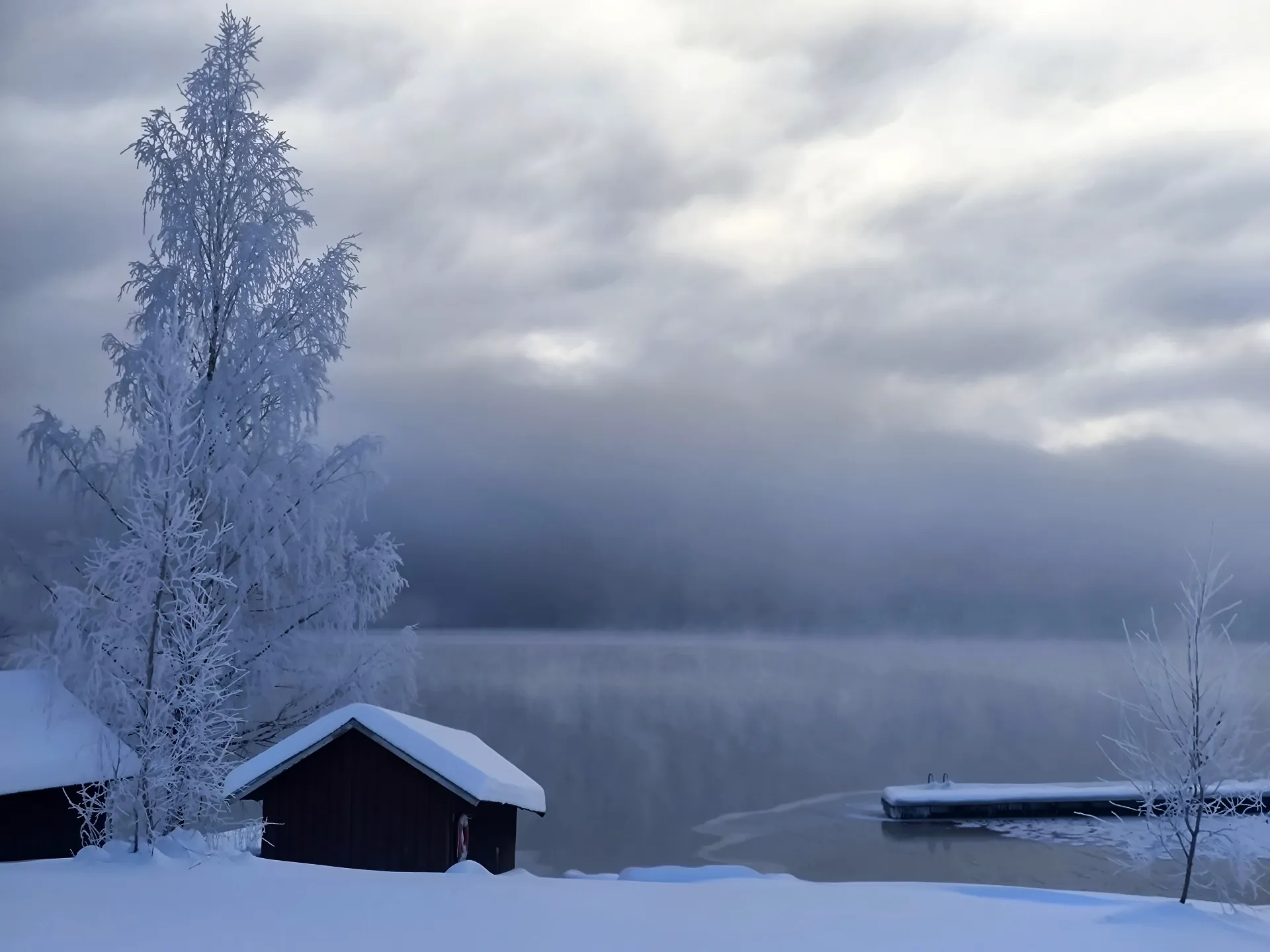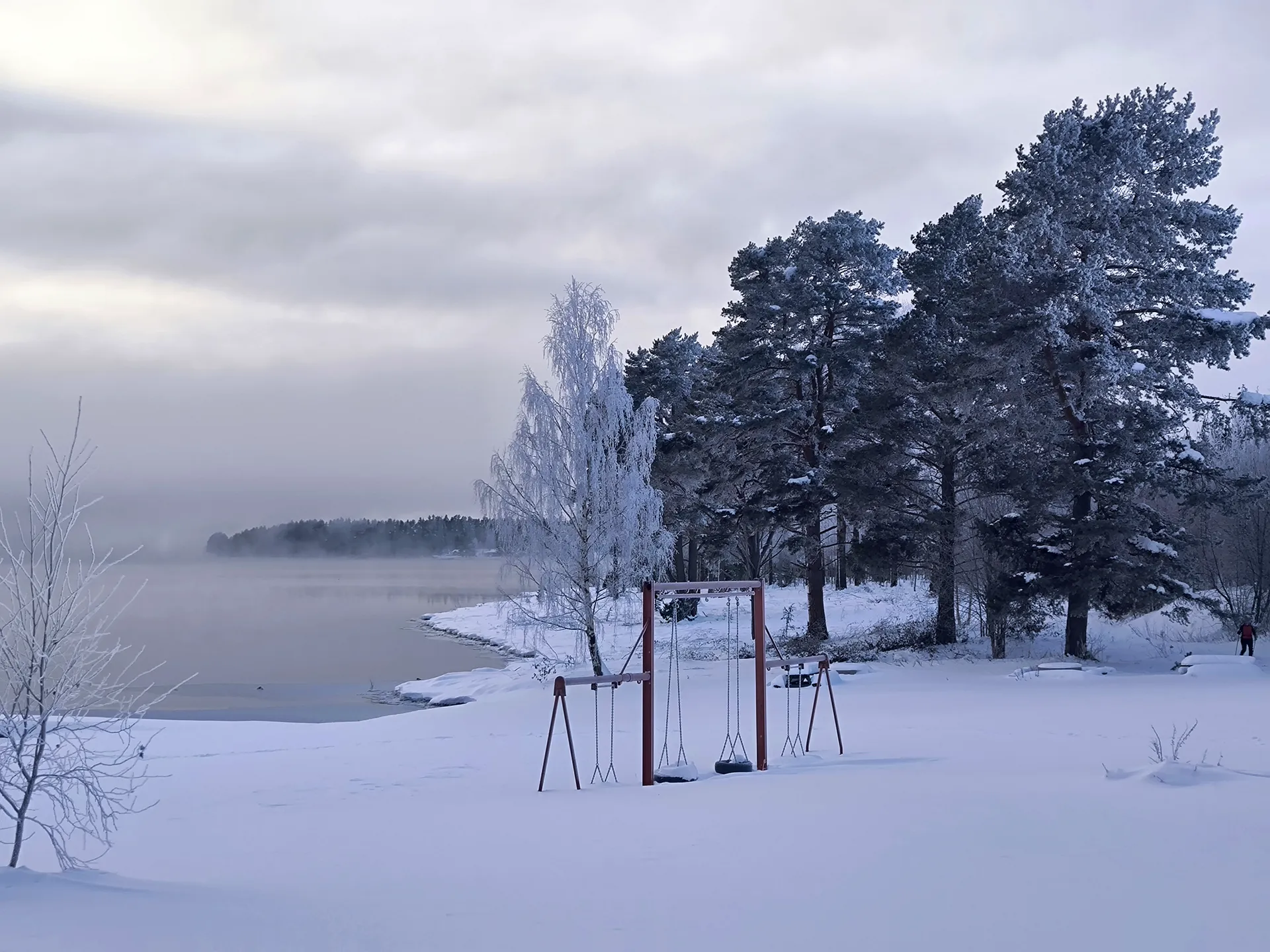 Keď som sa dostal bližšie k jazeru, mal som pocit, že stojím pri niečom, čo sa nedá celkom pomenovať. V lete je to určite voda plná života, pohybu a svetla. Teraz to bola obrovská biela plocha, ktorá splývala s obzorom. Nedalo sa presne určiť, kde končí jazero a kde začína zem. Otvorený priestor dodával vetru silu a ostrosť. No zároveň všetko pôsobilo neuveriteľne pokojne. Ako keby všetko spalo – krajina, voda, aj čas. Človek má chuť len tak tam stáť a pozerať sa. Bez potreby niečo hovoriť. Bez potreby niečo fotiť. Len byť.