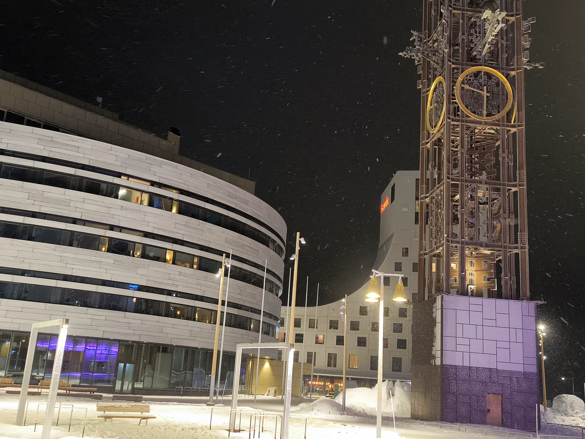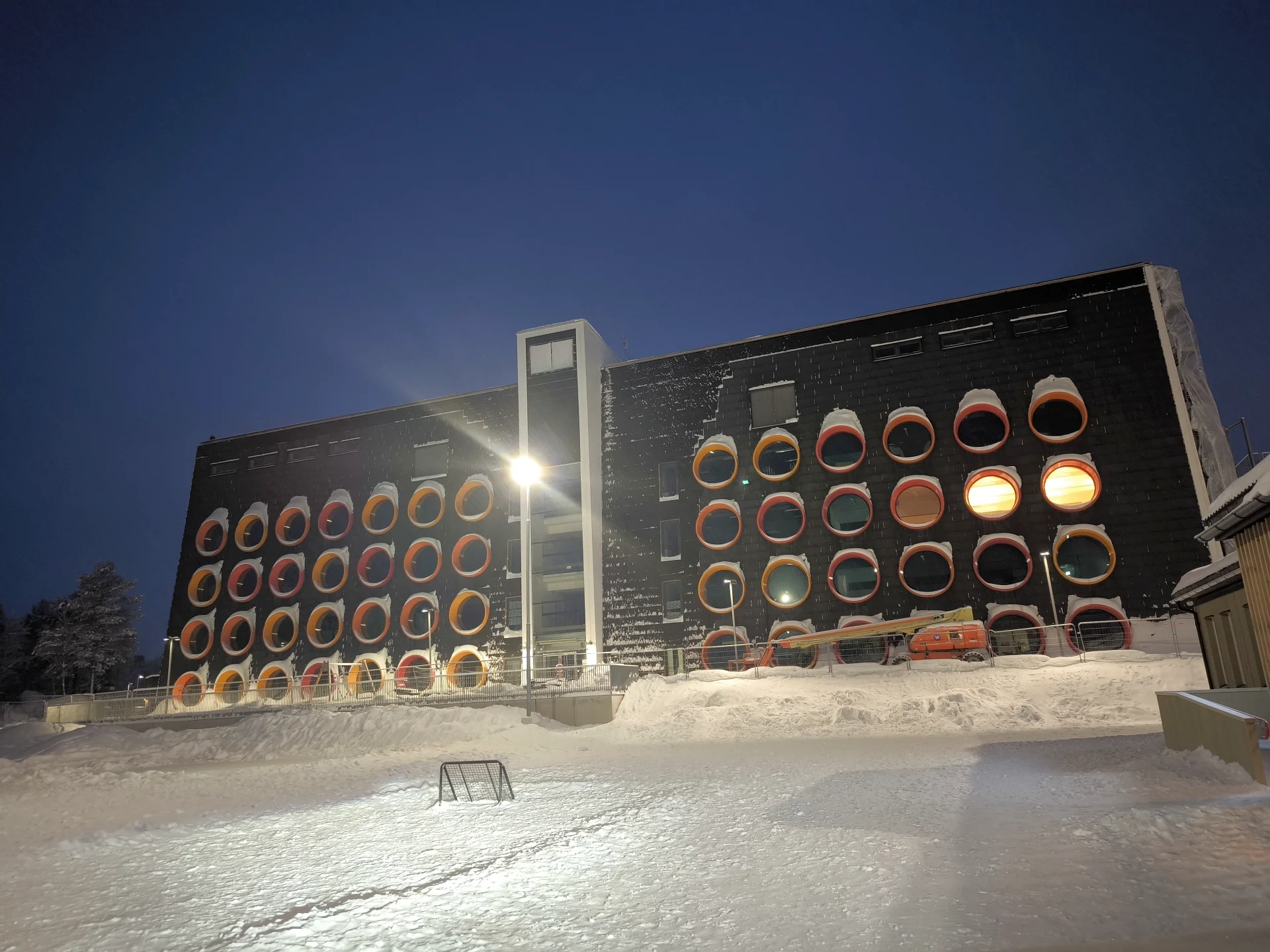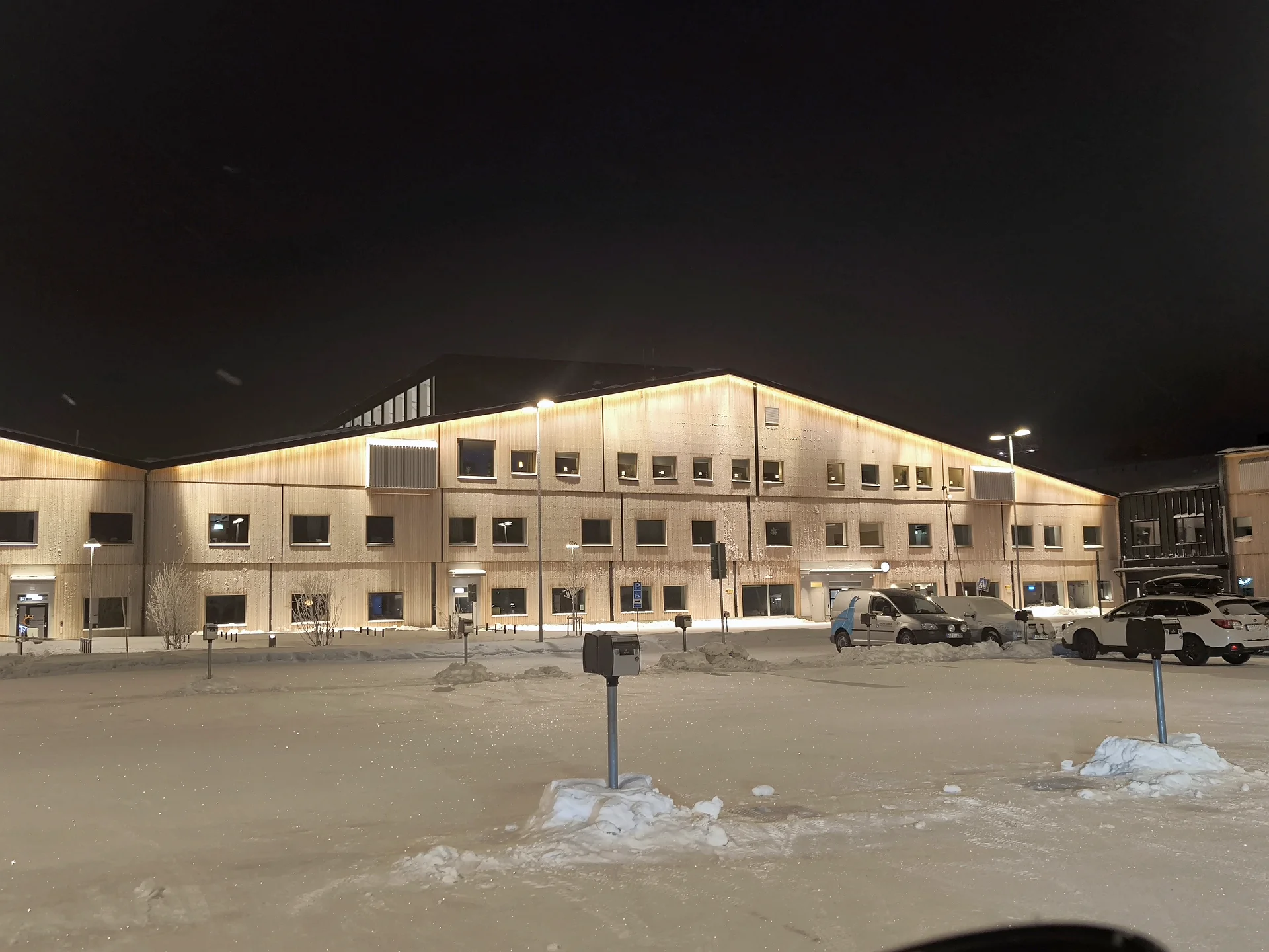 Je zvláštny pocit prechádzať sa novou časťou mesta – moderné budovy, osvetlené ulice, ticho severu – a vedieť, že stará Kiruna postupne ustupuje baniam.