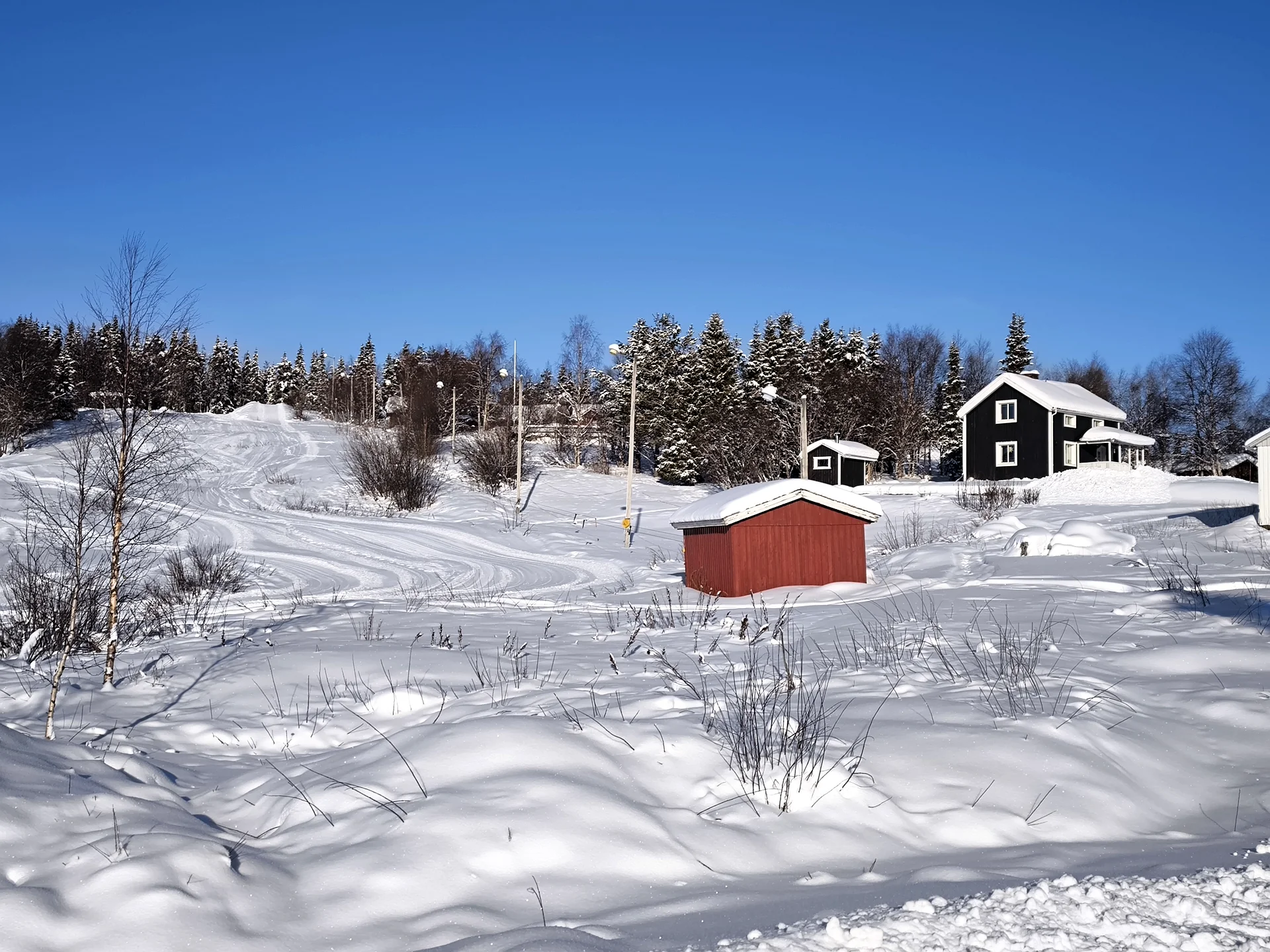 Dedinka pôsobila takmer vyľudnene. Len občas prešlo auto. Niekedy sa v diaľke ozval snežný skúter. Inak nič. Ticho.